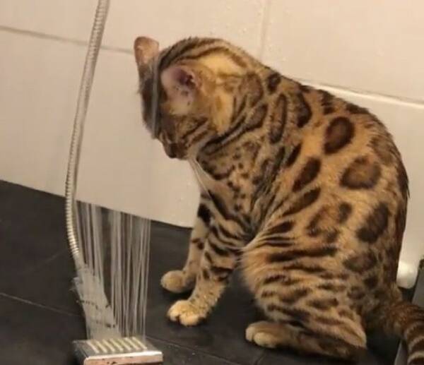シャワー大好きベンガル猫 下から浴びるのがマイブーム 19年6月18日 エキサイトニュース